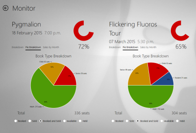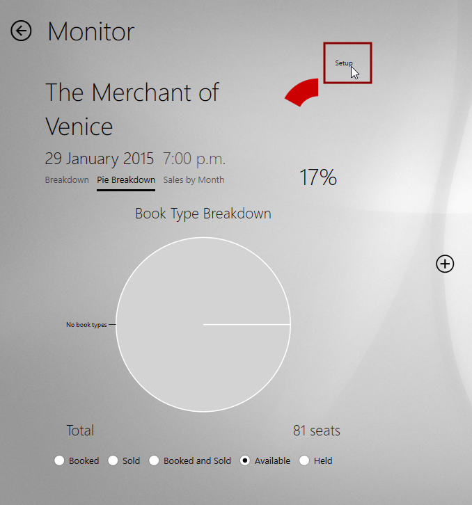 It is possible to view information on more than one production or performance. Click the button that looks like a plus-in-a-circle. Select Production Monitor or Sales by Month. Another Setup window will appear.