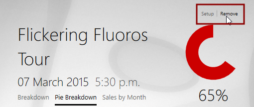 When you click the tile, a detail view is revealed. This is also where the tool is configured. The Setup button is normally invisible, but moving the mouse pointer or touching around the area just above the small graph to the right of the production name will reveal the word Setup. Click Setup to open the configuration window.